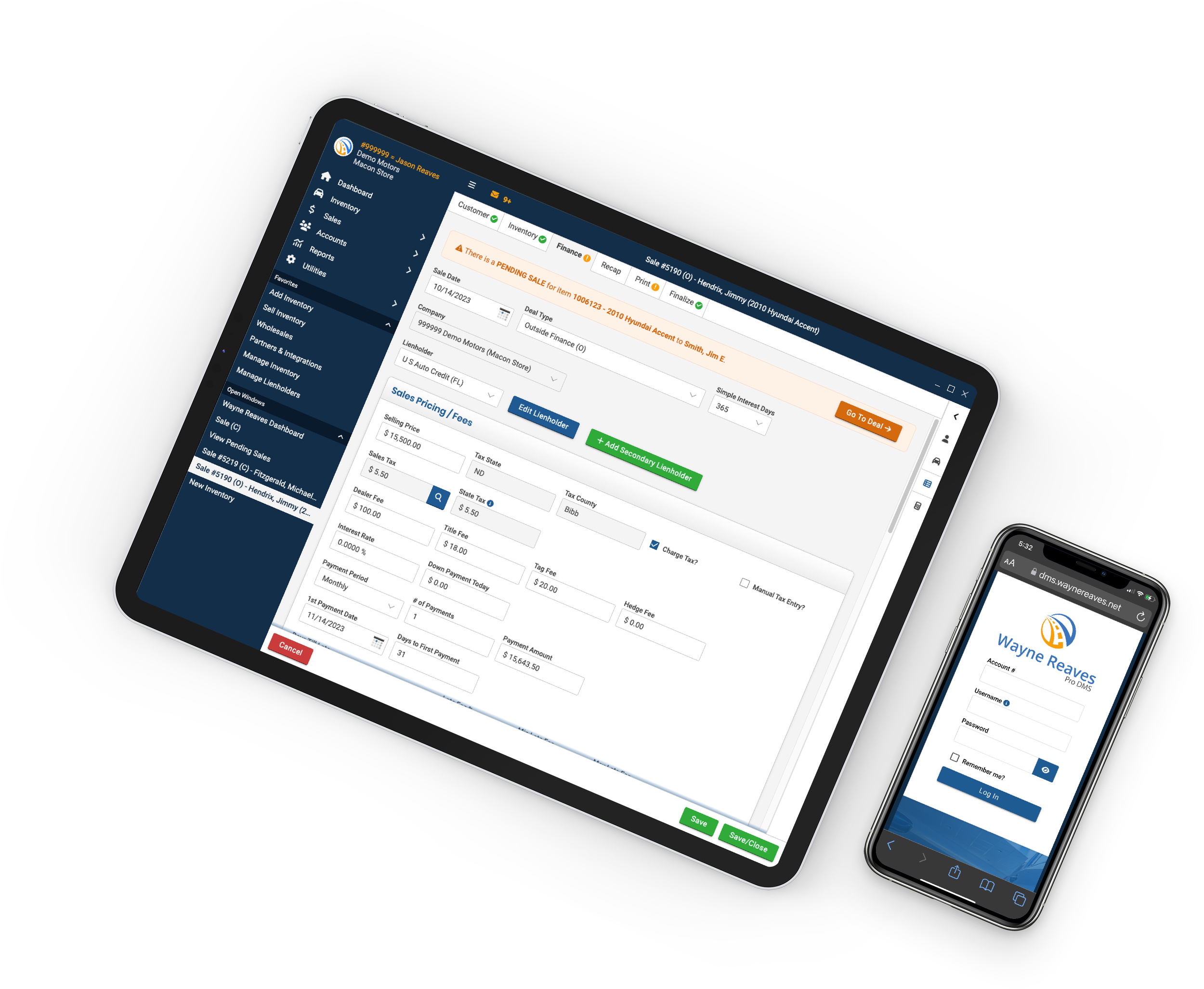 Wayne Reaves Software gives dealerships technology that actually understands them. Every tool in our platform is shaped by decades of experience in the auto dealer industry and years of real conversations with real dealers, not by tech trends or guesswork. From inventory and sales to accounting, reporting, payments, websites, and beyond, our system is built to run the entire backbone of a dealership with reliability you can feel.